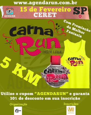 🎉 Destaque: Corrida temática de Carnaval.