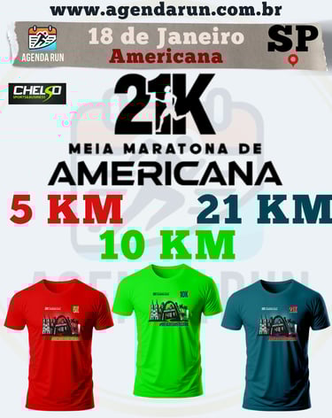 A 2ª Meia Maratona de Americana é o pontapé inicial do ano e a primeira etapa do Circuito Corre SP, levando você a correr com segurança em um percurso rápido e emocionante na Praça Comendador Muller!