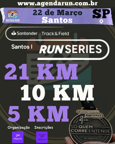 A brisa do mar te chama! 🏖️ A etapa Santos I do Santander Track&Field Run Series chega para um desafio incrível no litoral paulista. Com largada no Emissário Submarino, você vai correr sentindo a energia da praia em um percurso plano e rápido.
