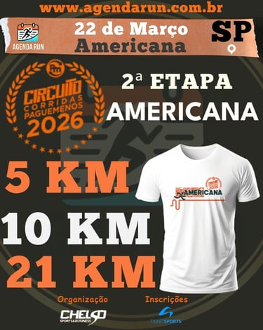 Prepare-se para o grande desafio de Meia Maratona do Circuito Pague Menos! A 2ª Etapa acontece em Americana, trazendo 21K de superação, além dos percursos de 5K e 10K. Com percurso supervisionado pela FPA e premiação em vale-compras, é a sua chance de conquistar um novo recorde pessoal!