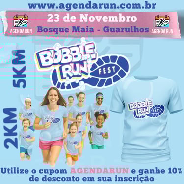 CORRIDA OU FESTA? OS DOIS! 🫧🏃 Prepare-se para a Bubble Run Fest, a prova mais divertida e colorida do seu calendário, que promete transformar a linha de chegada em uma verdadeira celebração!