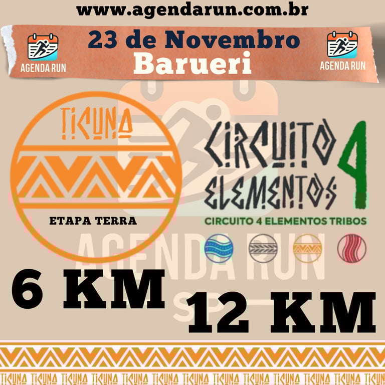 No dia 23 de novembro de 2025, a Rua São Paulo (esquina com Av. Dib Sauáia Neto – Alphaville, Barueri) recebe a terceira etapa do Circuito 4 Elementos! Prepare-se para percursos desafiadores de 6 km e 12 km, disputados nas ruas arborizadas de Alphaville. Evento aberto para homens e mulheres, com largada às 7h, variedade de kits (econômico, essencial e combo), camiseta oficial, bag e medalha garantidas para todos que cruzarem a linha de chegada. Premiação para os 5 primeiros em cada gênero geral e nas faixas etárias.