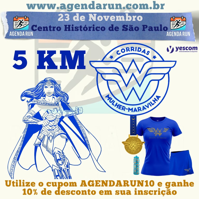 O maior encontro de heroínas corredoras do Brasil está de volta! Em 23 de novembro, a 29ª Corrida Mulher Maravilha São Paulo toma conta do Centro Histórico, com largada a partir das 7h para corrida e caminhada de 5K. Com um percurso recheado de energia, animação e representatividade, a prova celebra o poder e o protagonismo das mulheres, reunindo participantes em mais uma edição épica e emocionante.esportividade+2