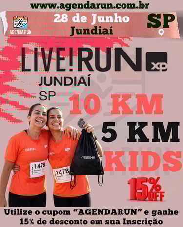 A energia contagiante do circuito LIVE! RUN XP aterra em Jundiaí no dia 28 de junho para uma manhã inesquecível de desporto, superação e bem-estar. 🏃♂️💨