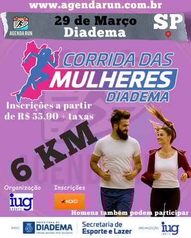 Está quase a chegar a hora de celebrarmos a determinação feminina no asfalto! 🏃♀️✨ A Corrida das Mulheres aterra em Diadema para um domingo que será muito mais do que uma prova; é um manifesto de saúde, empoderamento e superação em cada quilómetro.