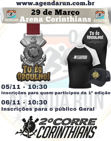 A segunda edição da corrida mais alvinegra de São Paulo está de volta! Prepare-se para correr no gramado do templo, a Arena Corinthians, e sentir a energia da Fiel!