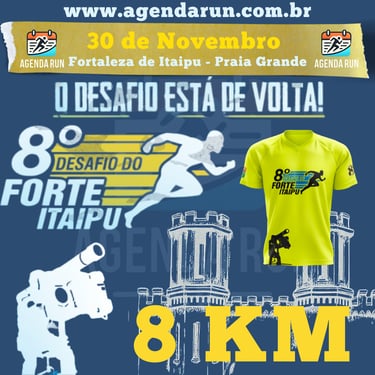 No dia 30 de novembro de 2025, Praia Grande recebe a 8ª edição do Desafio do Forte Itaipu, tradicional corrida rústica no cenário único da Fortaleza de Itaipu. O percurso de 8 km mistura areia da praia e estradas de calçamento em meio à mata atlântica, passando por monumentos históricos e com largada às 7h na Praça Duque de Caxias. Todos os atletas inscritos garantem o kit completo (camiseta, bag, número de peito, chip e medalha), com premiação especial para os 5 primeiros do geral e para as maiores equipes. A retirada de kit ocorre no dia anterior mediante documento, termo e doação de 1kg de alimento. As vagas são limitadas!