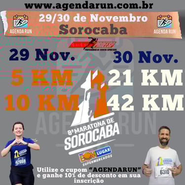 Nos dias 29 e 30 de novembro de 2025, Sorocaba será o destino dos apaixonados por corrida de rua! A 8ª Maratona Sorocaba reúne provas para toda a família: kids, caminhada 3K, 5K e 10K no sábado, e as provas principais de 21K e 42K no domingo. Com percurso homologado pela CBAT e largada/chegada no Parque das Águas, o evento é reconhecido como a maratona mais plana do estado (apenas 94m de ganho altimétrico) e serve como índice para provas reconhecidas internacionalmente – perfeito para quem busca tempo, desafio ou estreia em grandes distâncias.