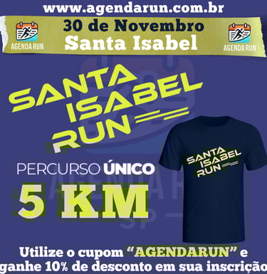 SANTA ISABEL RUN: CORRIDA E DESAFIO NO INTERIOR! 🏃💨 Marque na agenda: A Santa Isabel Run está chegando para desafiar os corredores e promover o esporte na cidade. Prepare-se para 5km de superação em um percurso com vias fechadas e todo o suporte necessário!