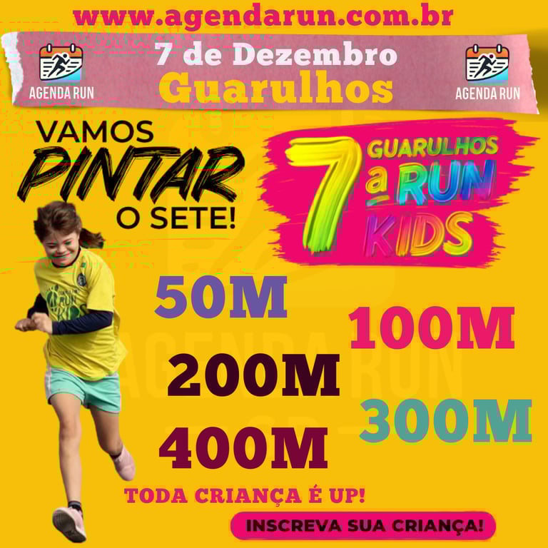 7ª Guarulhos Run Kids – Toda Criança é UP! Corrida inclusiva, colorida e cheia de alegria para crianças e adolescentes de 2 a 14 anos!