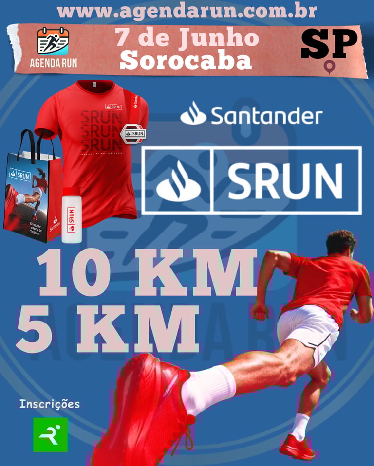 Prepare o seu fôlego para o encontro da dedicação com o desafio de ir além! No dia 07 de junho, Sorocaba recebe a etapa do Circuito SRun Santander, uma prova feita para quem busca unir saúde, performance e superação pessoal. 🚀💨