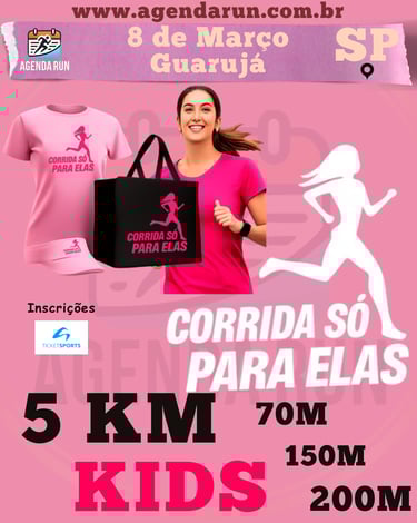 O Dia Internacional da Mulher merece uma celebração especial! ✨ A 7ª Corrida Só Para Elas chega à Praia da Enseada para colorir o Guarujá de rosa e reunir mulheres incríveis em busca de saúde e superação.