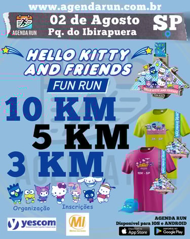 Prepare-se para a corrida mais fofa do ano! A Hello Kitty and Friends Fun Run retorna a São Paulo em 2026 para uma manhã repleta de diversão, saúde e momentos inesquecíveis no coração da cidade. Com percursos para todos os ritmos — desde os 10km para quem busca performance até a caminhada de 3km para curtir com os amigos e a família — o evento oferece uma arena temática exclusiva, kits personalizados e a presença ilustre da Hello Kitty e seus amigos. É a oportunidade perfeita para unir o esporte ao universo encantado de um dos ícones mais amados do mundo. Garanta seu lugar nessa festa rosa e venha correr com muita fofura e alegria!