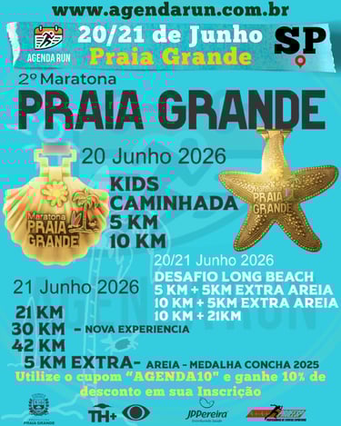 Prepare-se para o seu próximo grande desafio na Baixada Santista: a 2ª Maratona Praia Grande! Um evento com percursos certificados e distâncias para todos os níveis de corredores, do Kids aos maratonistas.
