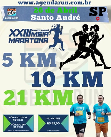 A prova mais tradicional do ABC Paulista está confirmada para a sua 23ª edição! A Meia Maratona de Santo André é o desafio perfeito para quem busca correr 5K, 10K ou os desafiadores 21K no coração da cidade.