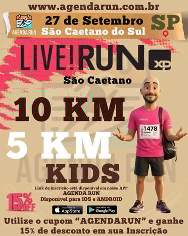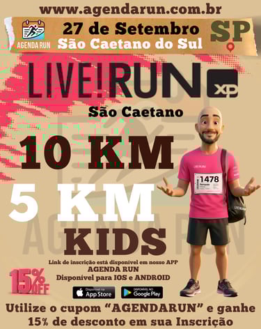 Prepare-se para viver o ritmo da LIVE! RUN XP no ABC Paulista! A etapa de setembro está confirmada e promete transformar a região em um cenário de pura vibração e conexão. Com a infraestrutura premium que é marca registrada do circuito, você terá à disposição uma Arena LIVE! completa, com música, bem-estar e ativações exclusivas. Seja para buscar o seu melhor tempo nos 10 km ou para curtir os 5 km com a galera, essa experiência é imperdível!