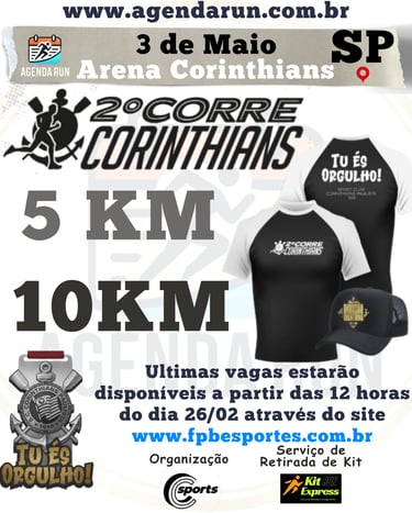 A espera acabou, Fiel! No dia 03 de maio, a energia da Neo Química Arena sai das arquibancadas e invade o asfalto. Prepare o seu manto e o seu fôlego para uma experiência inesquecível de corrida e paixão! 🏃♂️💨