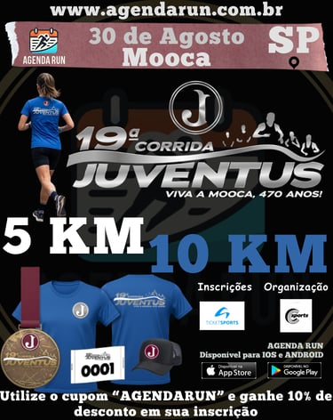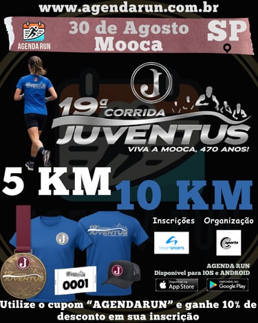 📅 Data: Domingo, 30 de agosto de 2026 📍 Local: Clube Atlético Juventus (Rua Juventus, 690 – Mooca, São Paulo/SP) ⏰ Largada: 07h00 🏃 Distâncias: 10 km e 5 km (Corrida) | 5 km (Caminhada)