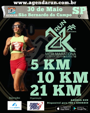 📅 Data: Sábado, 30 de maio de 2026 📍 Local: Caminhos do Mar (Rod. Caminho do Mar, km 42 – S. B. do Campo/SP) ⏰ Largada: A partir das 14h30 (21 km) | 15h15 (5 km e 10 km) 🏃 Distâncias: 5 km, 10 km e 21 km (Meia Maratona)