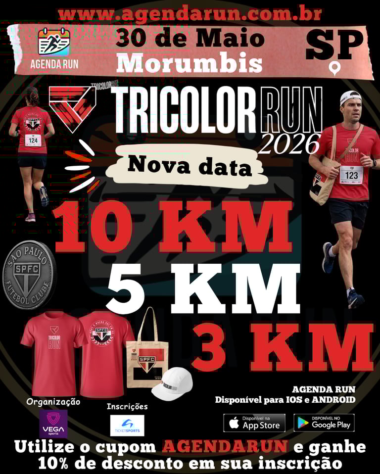 📅 Data: Sábado, 30 de maio de 2026 📍 Local: Parque Villa-Lobos (Av. Prof. Fonseca Rodrigues, 2001 – São Paulo/SP) 🏃 Distâncias: 10 km, 5 km e 3 km (Corrida e Caminhada)