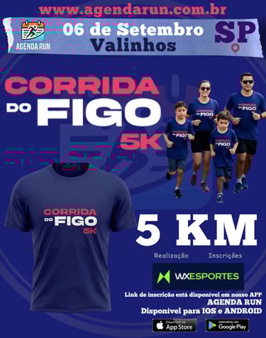 📅 Data: Domingo, 06 de setembro de 2026 📍 Local: Parque Municipal “Monsenhor Bruno Nardini” (Parque do Figo) – Valinhos/SP 🏃 Distância: 5 km